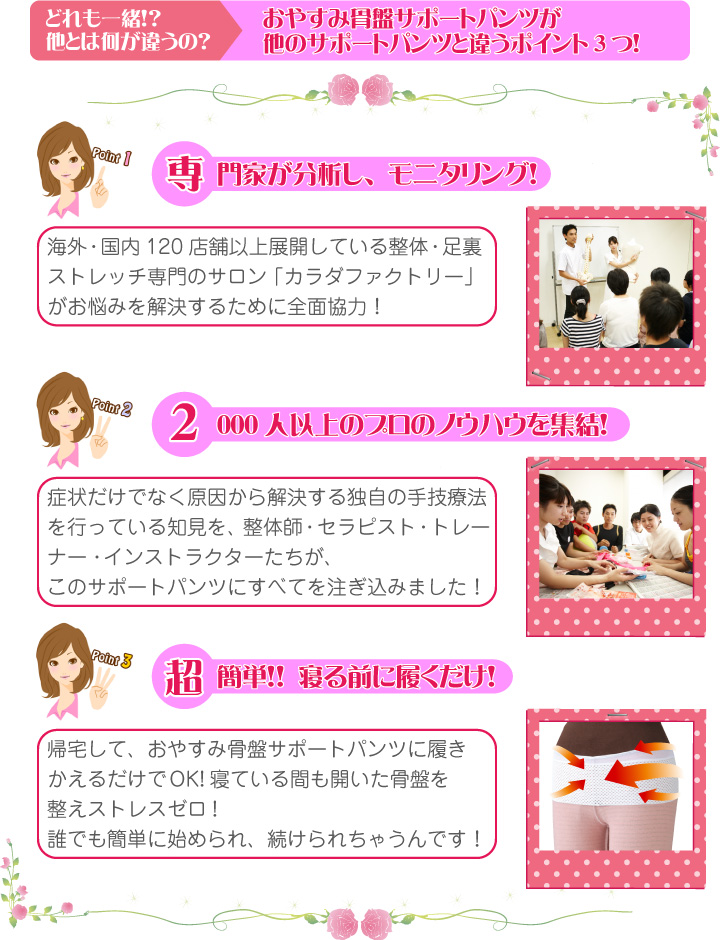 これら3つの要素がこの『おやすみ骨盤サポートパンツ』